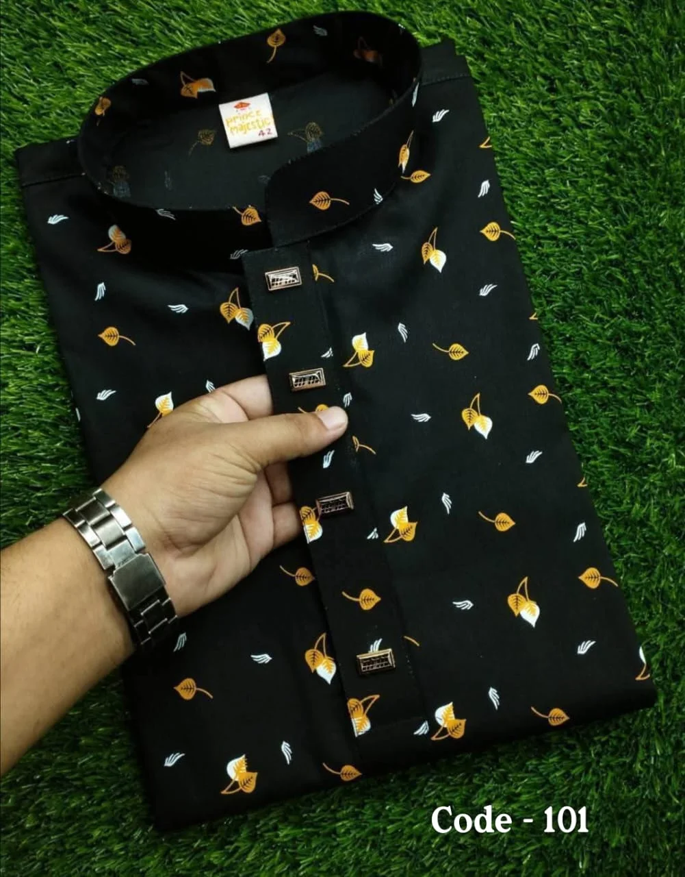 পানপাতা কালো হলুদ কালার পাঞ্জাবি – কোড: ১০১